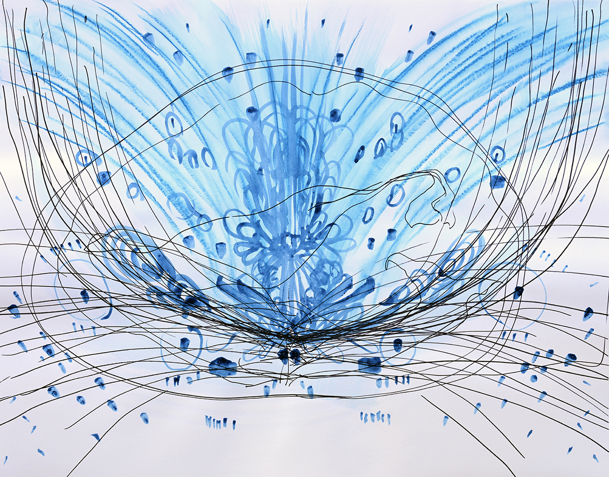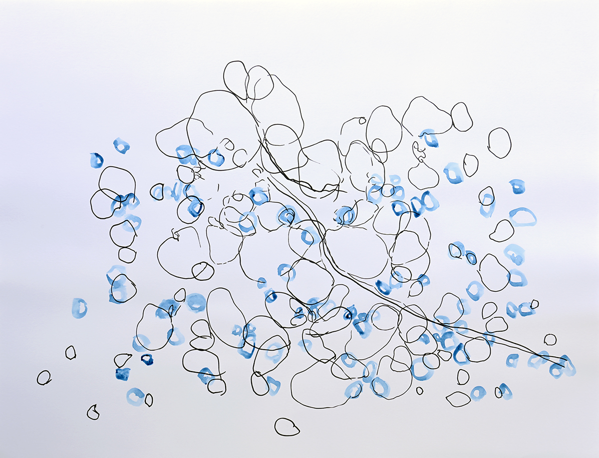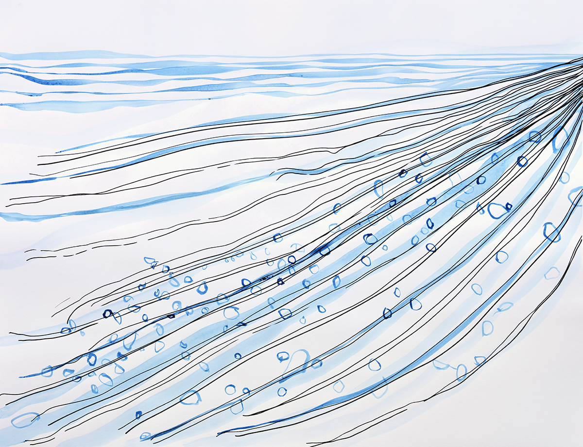 Phycocyanine (poudre d’algue bleue) et feutre sur papier, 50cm x 65cm / 2023
