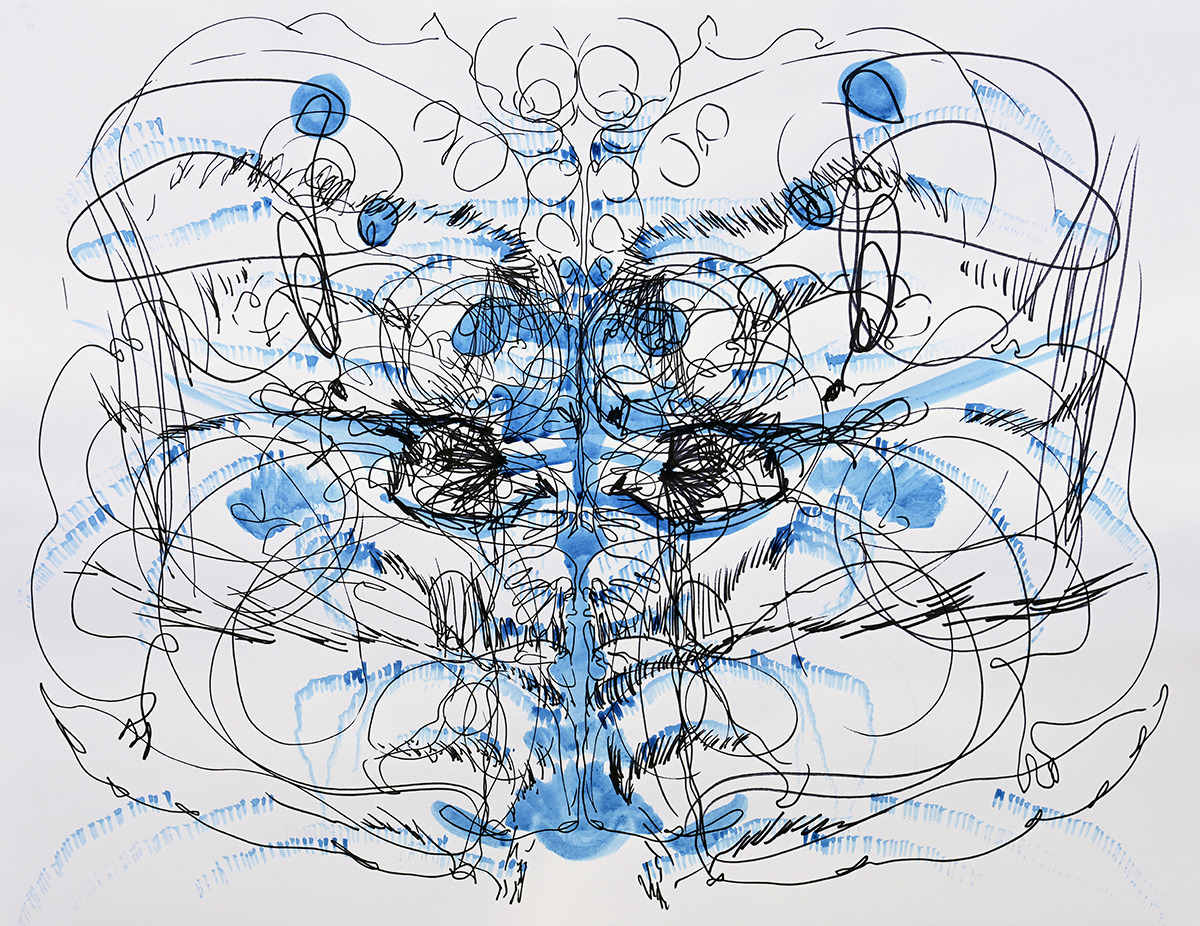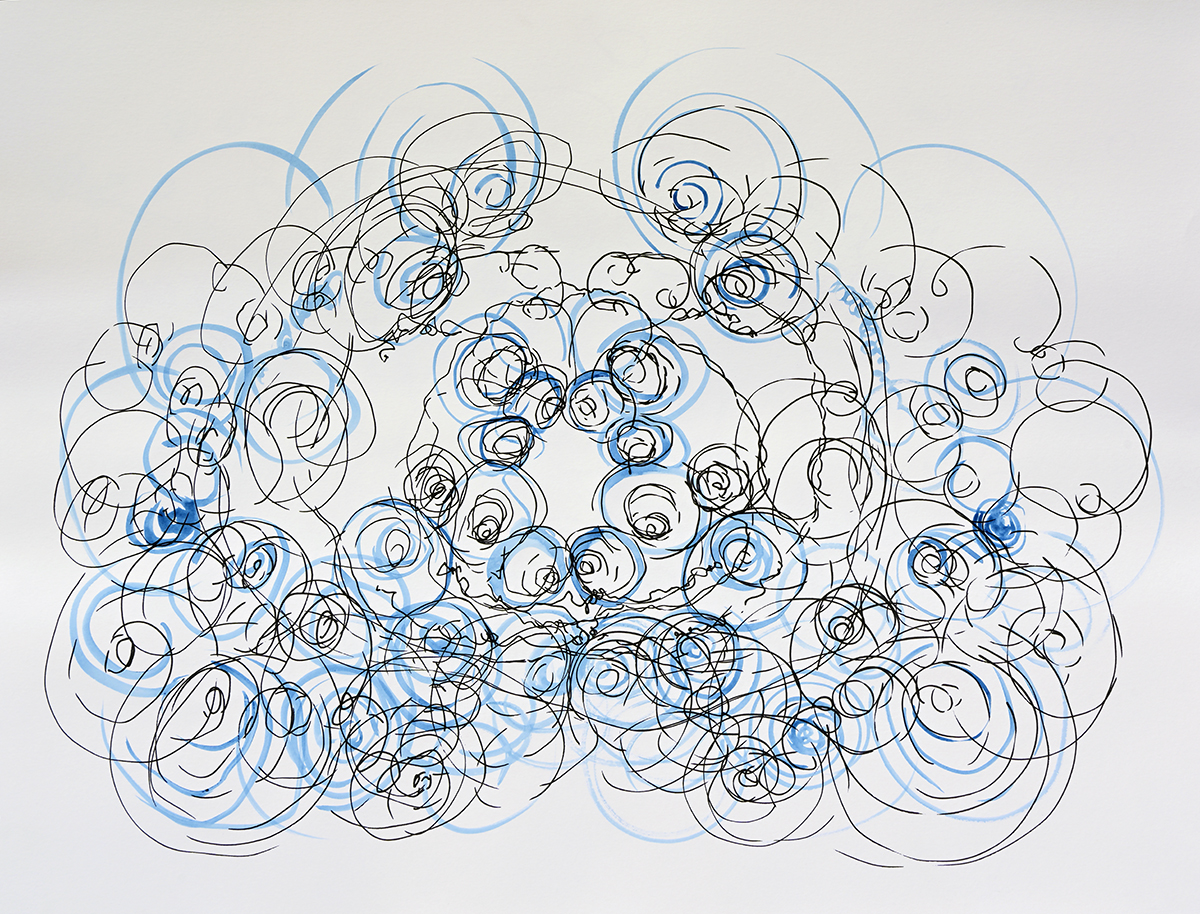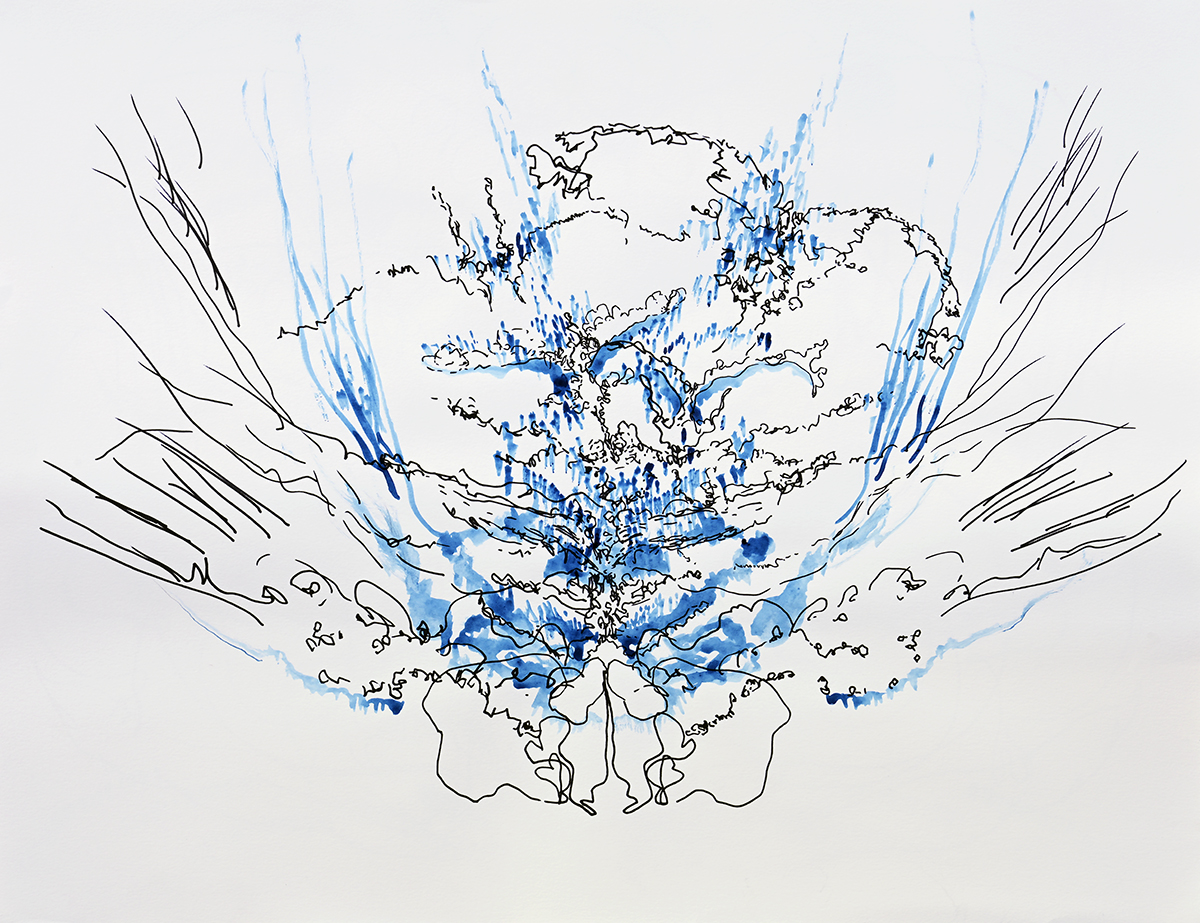 Phycocyanine (poudre d’algue bleue) et feutre sur papier, 50cm x 65cm / 2023