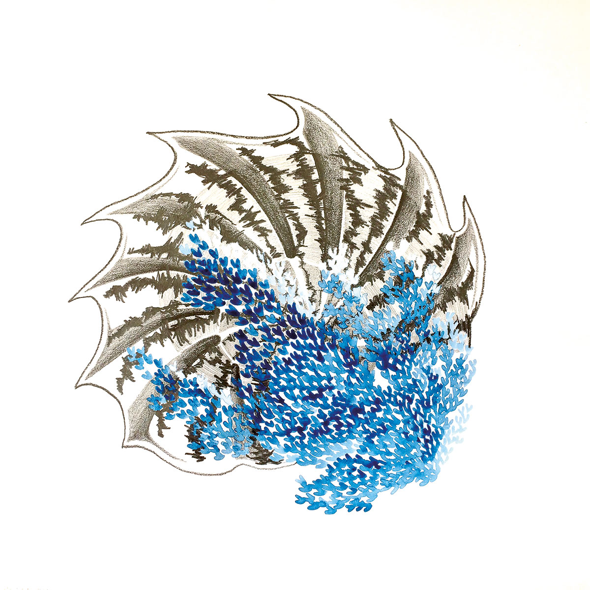 Mine de plomb et phycocyanine (cyanobactéries) sur papier