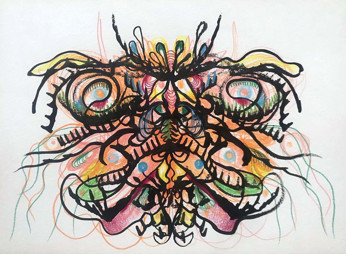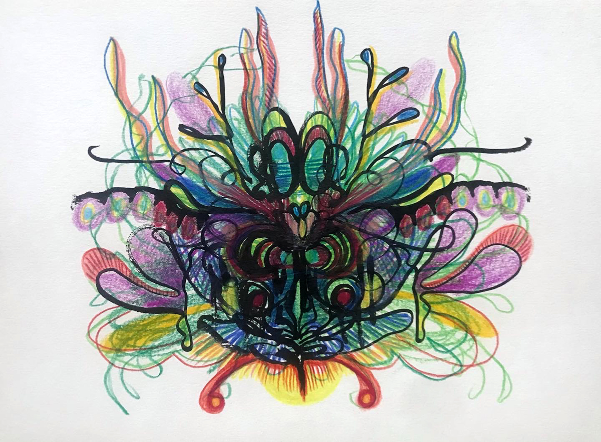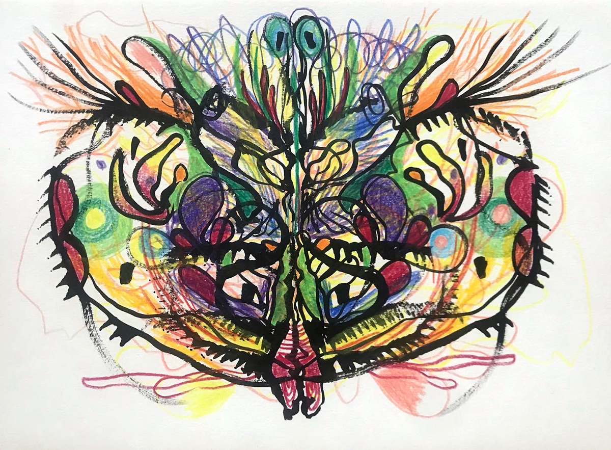 Encre de chine et crayons de couleur sur papier, 21 cm x 29,7 cm / 2024