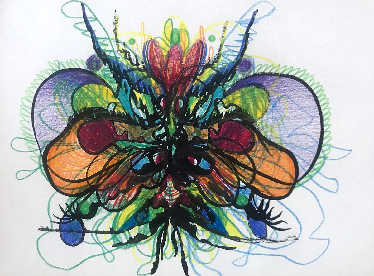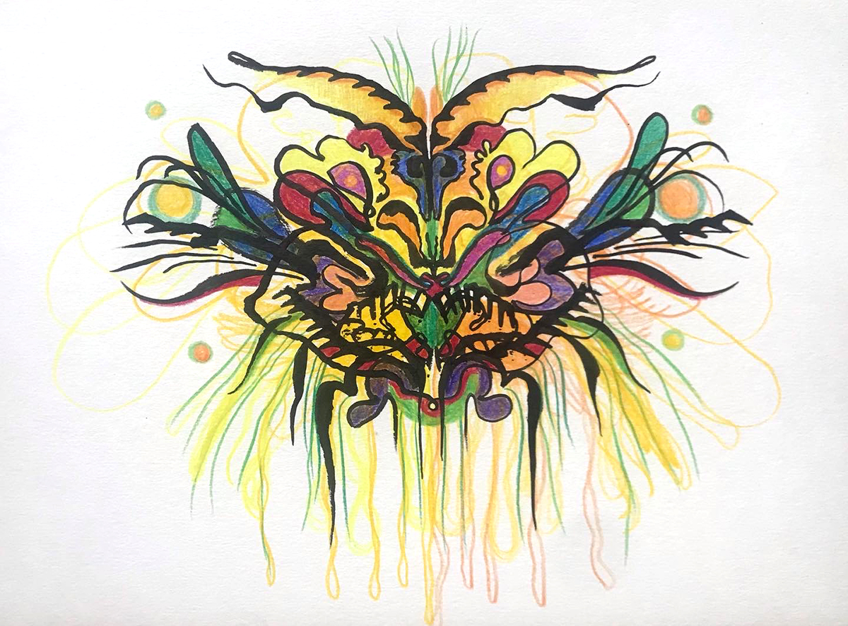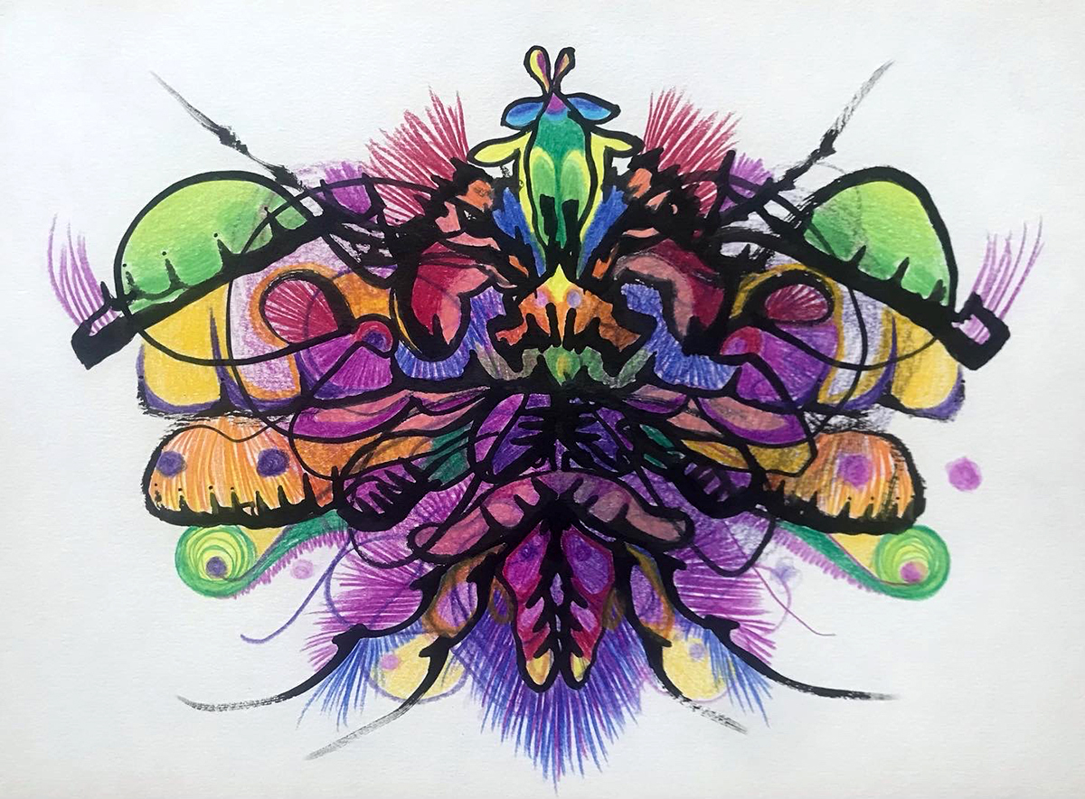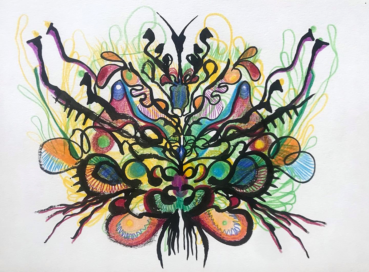 Encre de chine et crayons de couleur sur papier, 21 cm x 29,7 cm / 2024